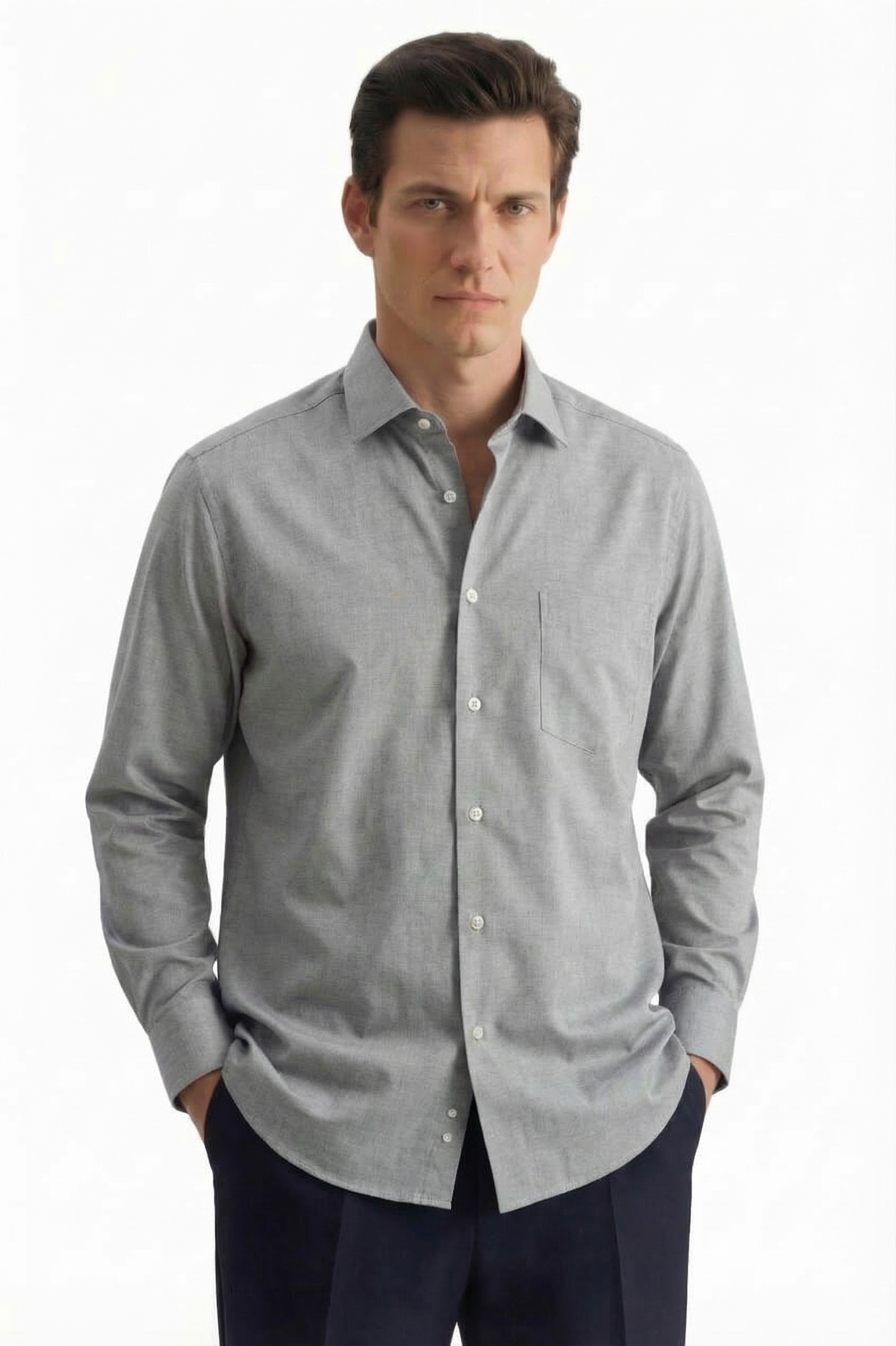 • Shaped Fit, Классический воротник, Светло-серый