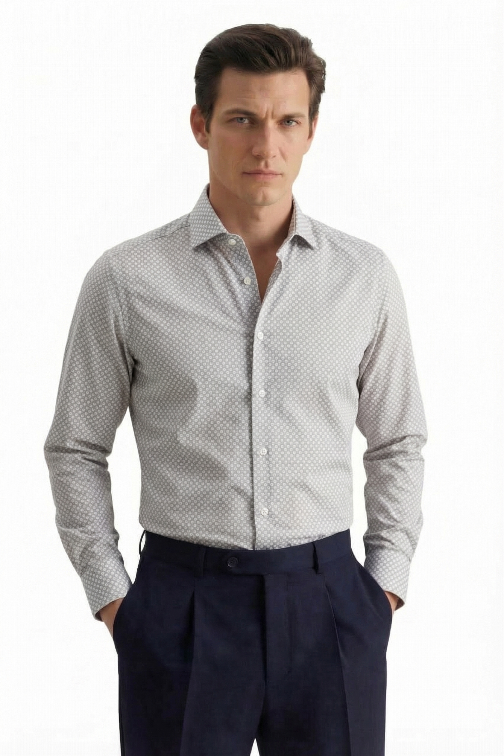 • Shaped Fit, Классический воротник, Светло-серый