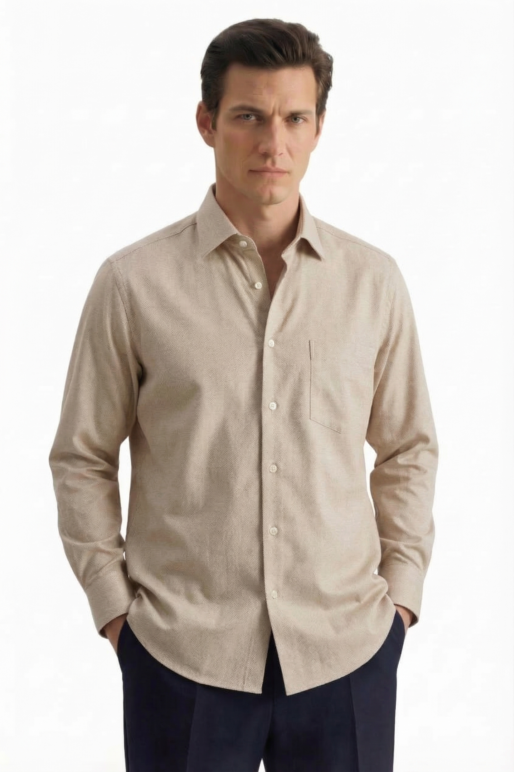 • Прямой силуэт, Классический воротник, Классический (на пуговице), Однотонный, Бежевый