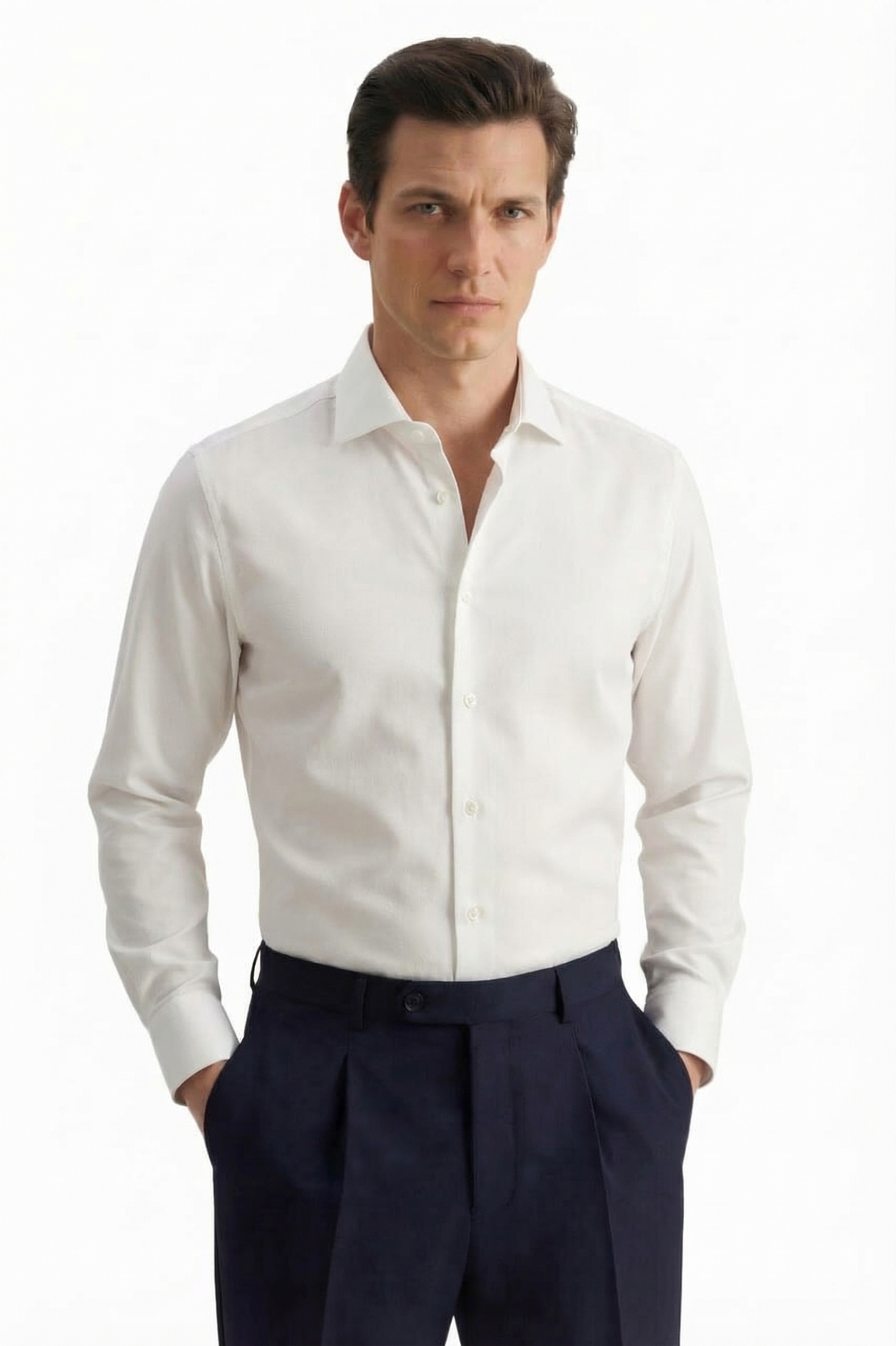 • Custom Fit, Классический воротник, Классический (на пуговице), Однотонный, Белый