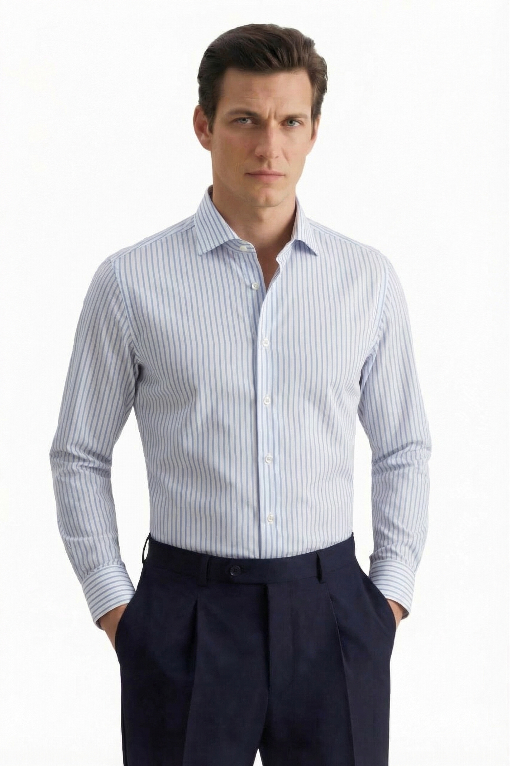 • Shaped Fit, Классический воротник, Классический (на пуговице), Голубой
