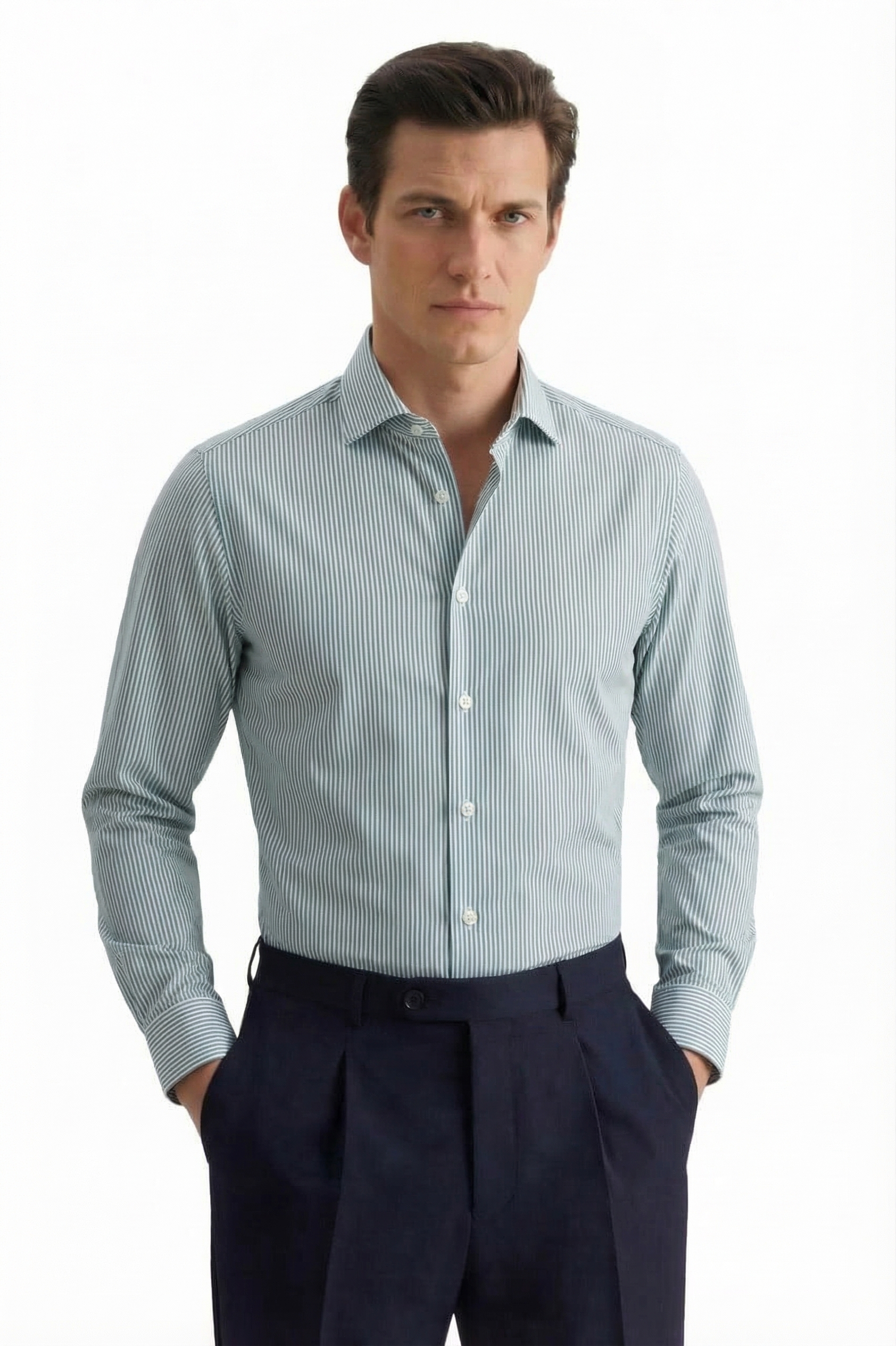 • Полуприлегающий силуэт, Классический воротник, Зеленый