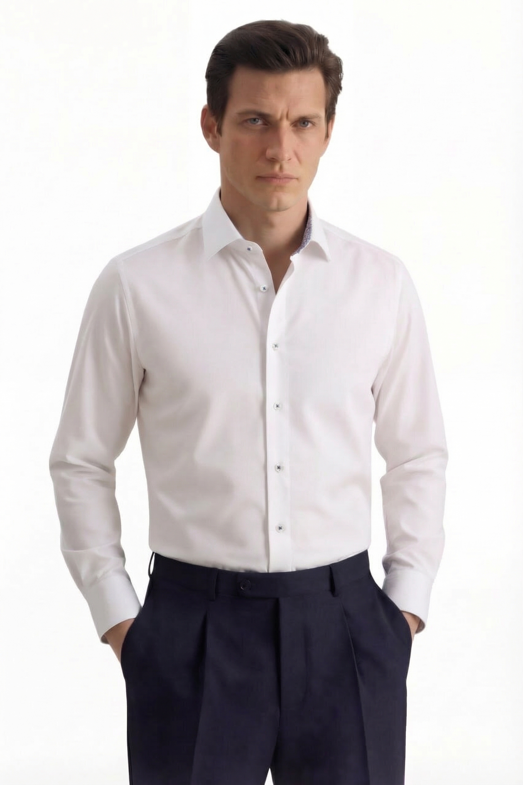 • Shaped Fit, Классический воротник, Классический (на пуговице), Белый