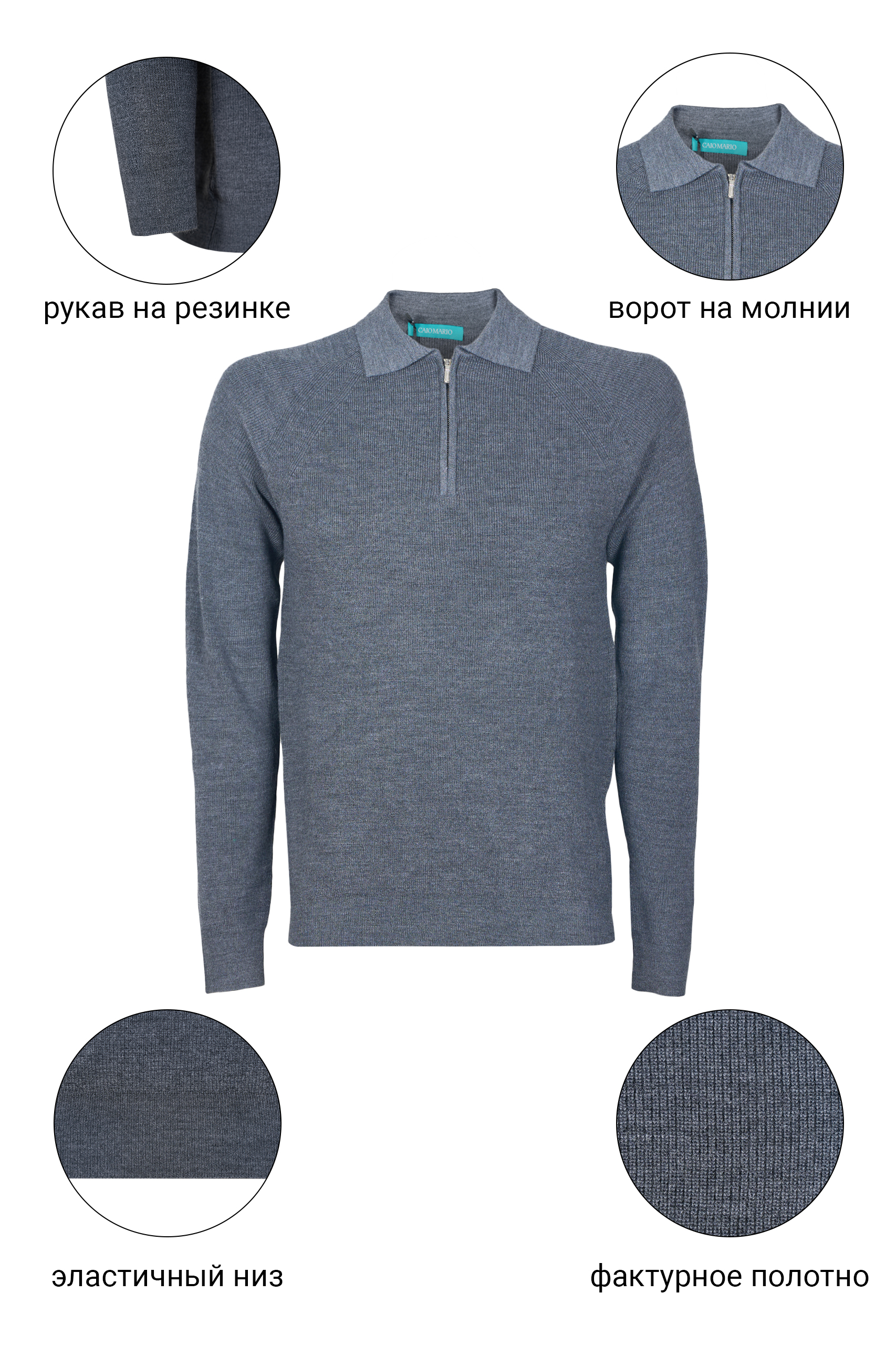• Джемпер CAIOMARIO полуприлегающего силуэта из высококачественной шерсти мериноса «Merino wool» с добавлением акрила. «Merino wool» это тонкая, мягкая и очень качественная шерсть. Она ценится за свои уникальные свойства, такие как превосходная терморегуляция (сохраняет тепло в холод и прохладу в жару), гигроскопичность (хорошо впитывает влагу, но быстро сохнет) и приятная на ощупь мягкость, благодаря которой она не «колется». Воротник отложной. Застежка на короткую молнию. Низ изделия и рукавов на резинке. Прекрасно сочетается с джинсами и брюками . Стильная и элегантная вещь отлично подойдет для повседневной носки. Выбирайте качество, выбирайте стиль, выбирайте CAIOMARIO!