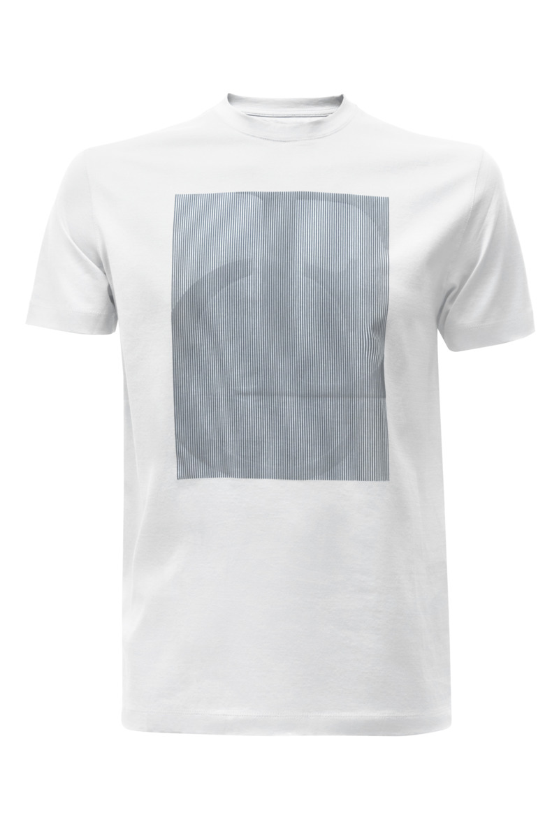 • Приталенный силуэт, Круглый, Принт, Белый