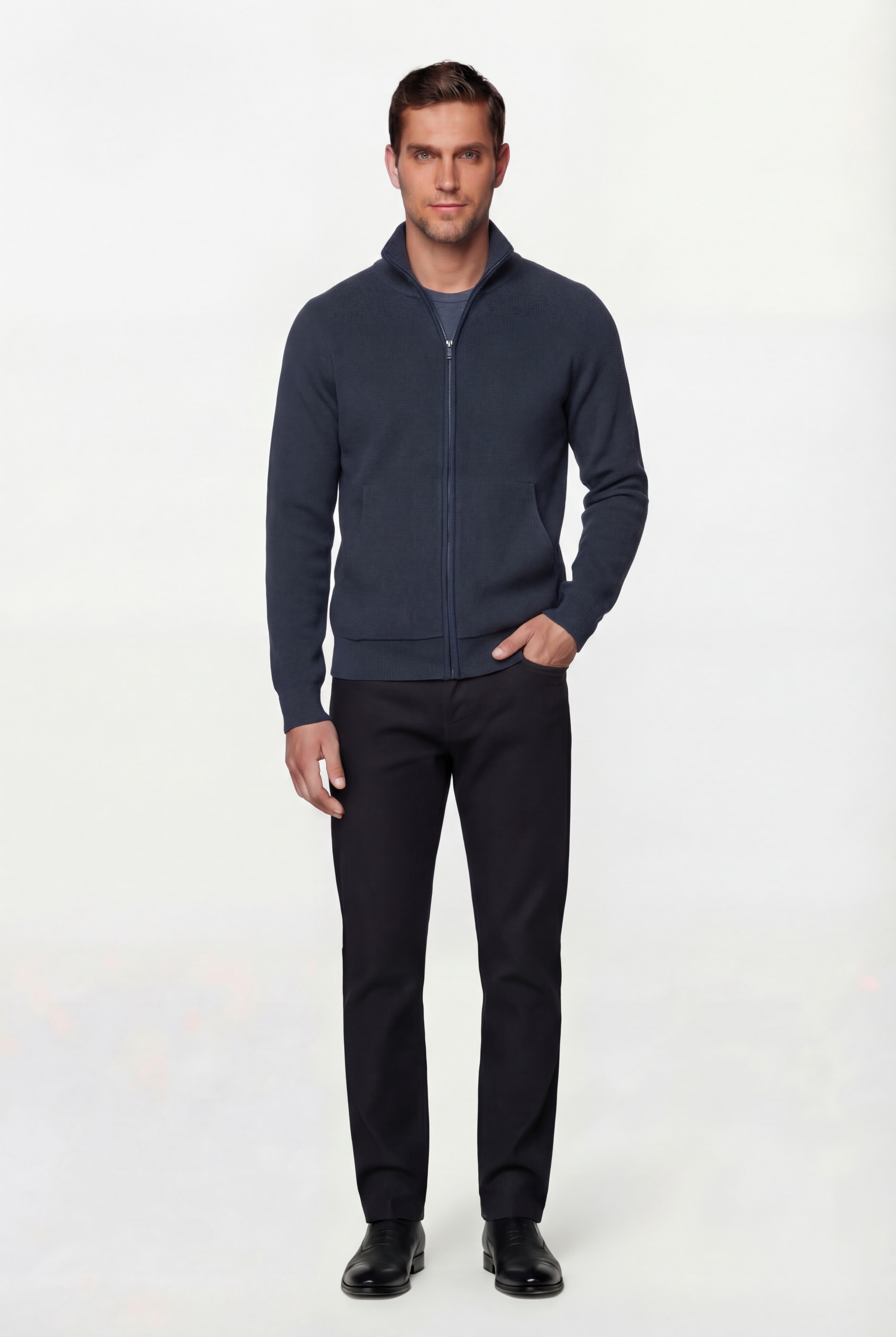 • Кардиган CAIOMARIO полуприлегающего силуэта из высококачественного хлопкового трикотажа с добавлением акрила. Воротник стойка. Застежка на молнию. Два накладных кармана. Низ изделия и рукава на резинке. Прекрасно сочетается с джинсами и брюками. Стильная и элегантная вещь отлично подойдет для повседневной носки.