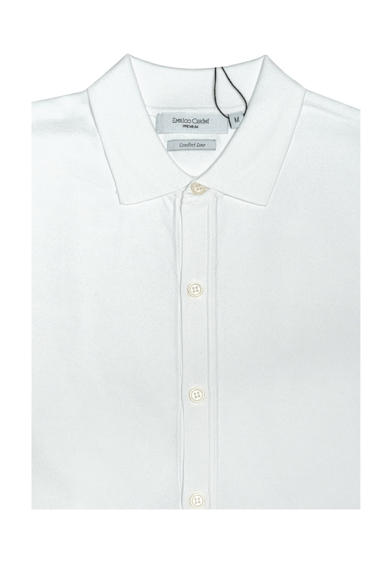 • Трикотажная рубашка ENRICO CERINI прямого силуэта, из высококачественной смесовой пряжи. Застежка на пуговицы. Отложной воротник. Прекрасно сочетается с брюками и джинсами, отлично подходит для повседневной носки.