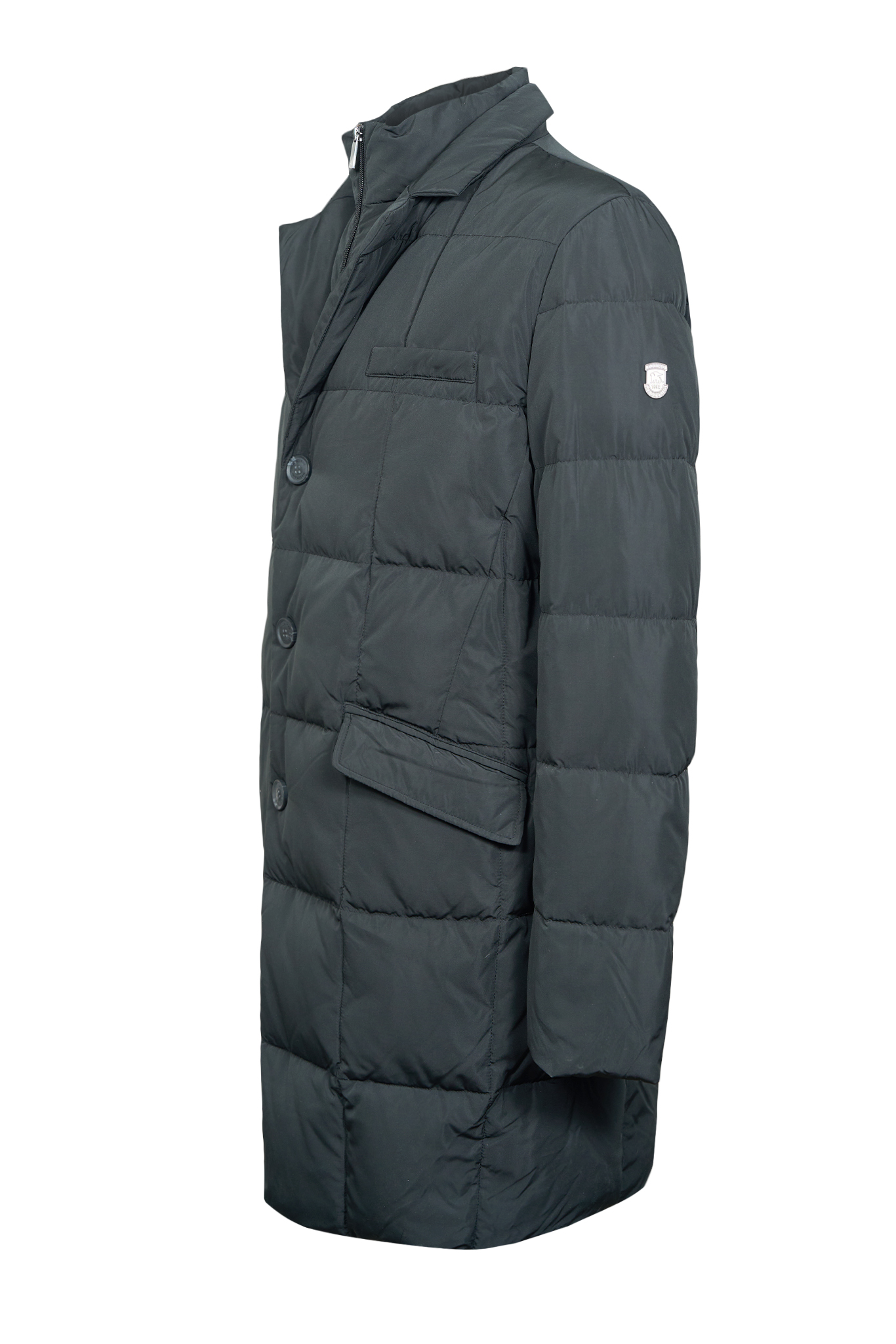 • Пуховик MADZERINI без капюшона, прямого силуэта из ткани с высокой степенью защиты от ветра и влаги. Внутри отстегивающаяся манишка с воротником-стойка. Застежка на кнопках с декоративными пуговицами. Три наружных кармана. Два внутренних кармана на молнии. На левом рукаве фирменный логотип. Внутреннее наполнение: 90/10 утиный пух-перо. Отлично подходит для повседневной носки.